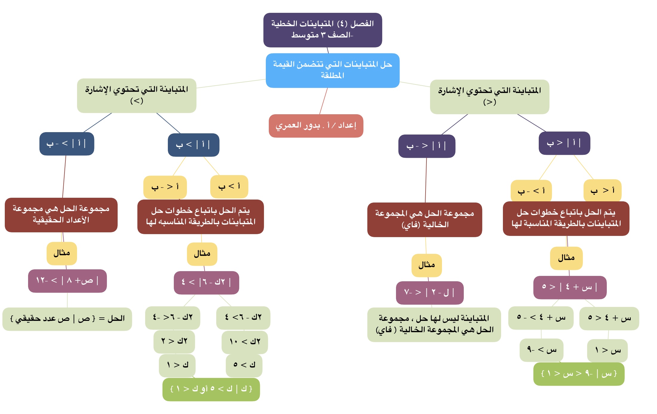 خريطة ذهنية لدرس حل متباينات تتضمن القيمة المطلقة - ٣م