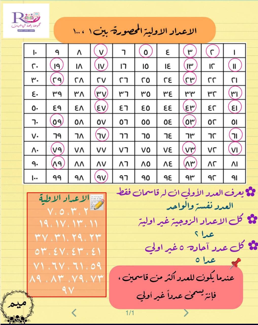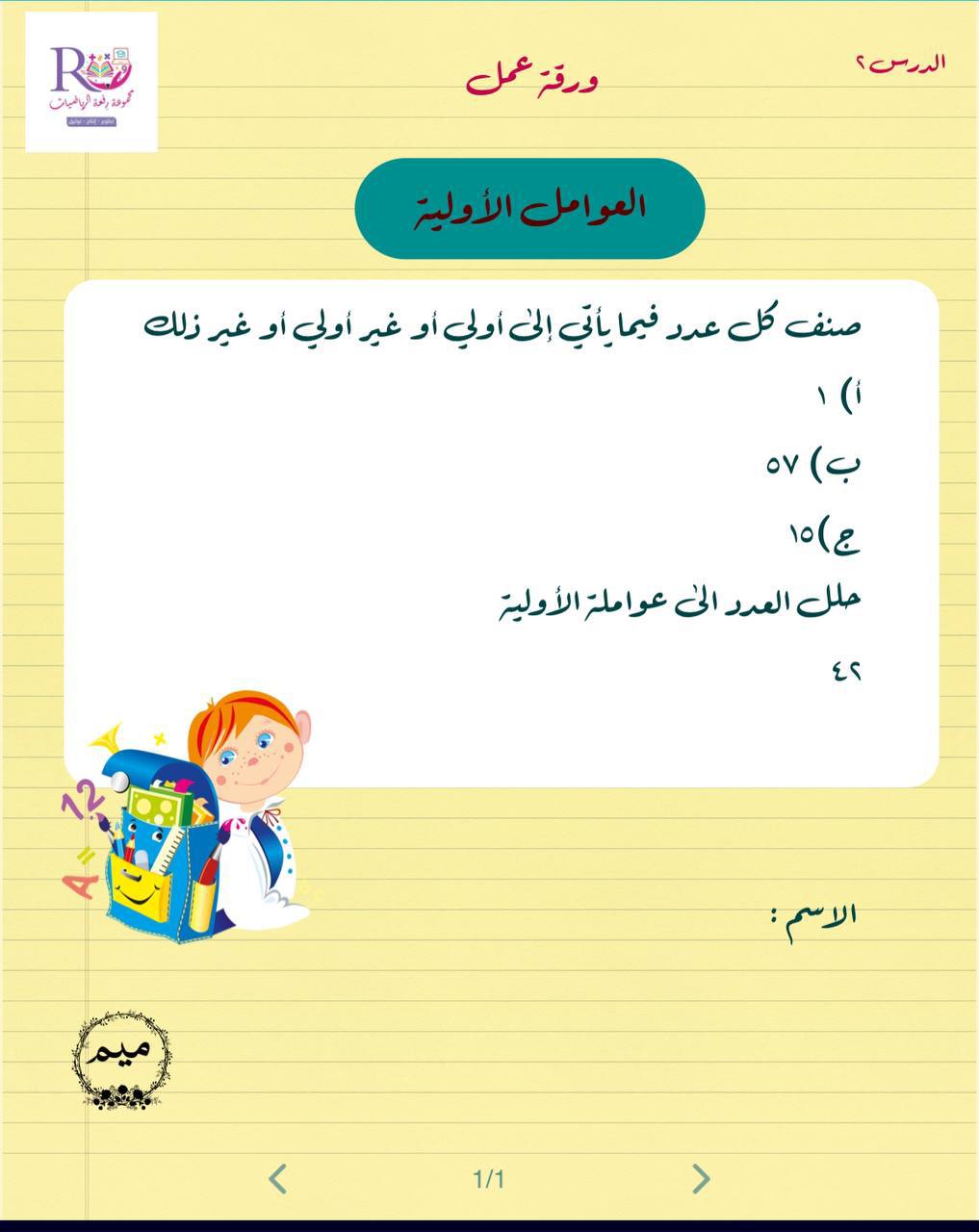 ملخص الدرس الثاني العوامل الأولية pdf أ/مريم الغامدي