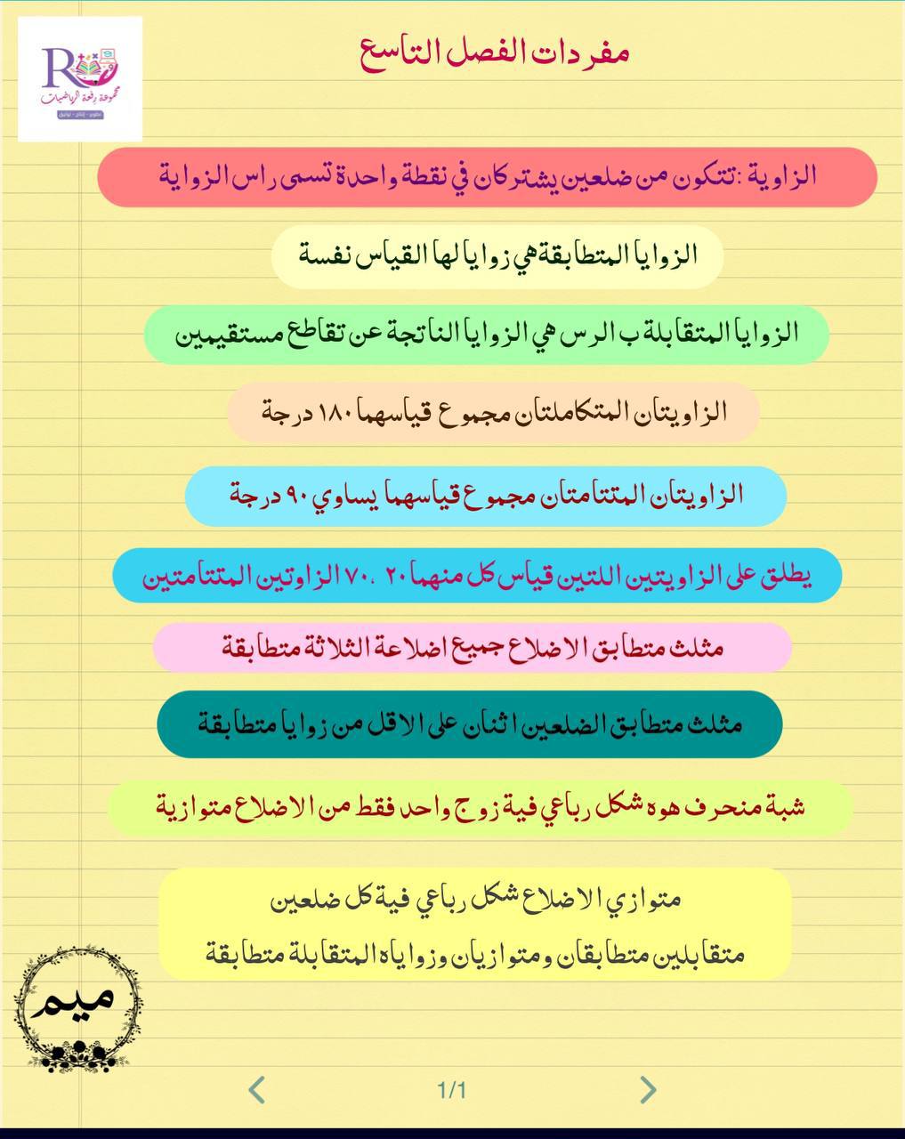 مفردات الفصل التاسع