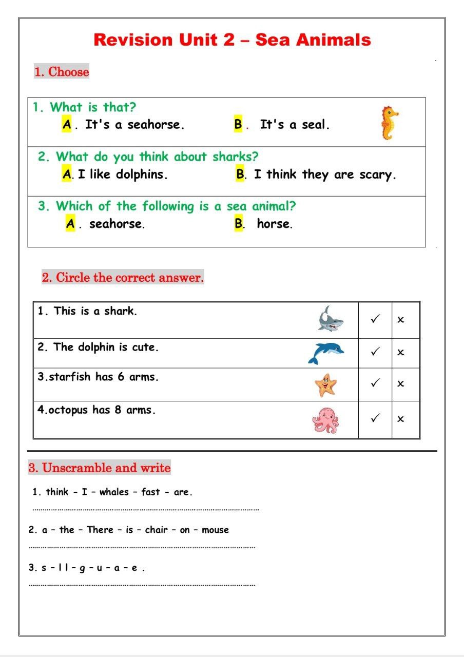 ورقه عمل علي الوحده الثانيه بالاجابات