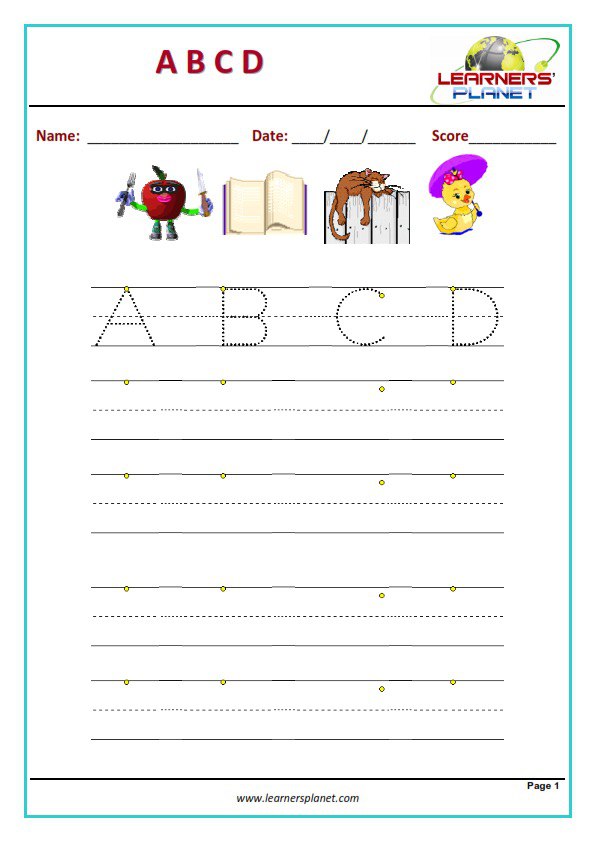 ورقه عمل علي احرف (a-b-c-d)