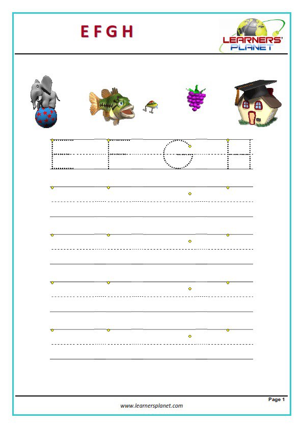 ورقه عمل علي احرف (e-f-g-h)