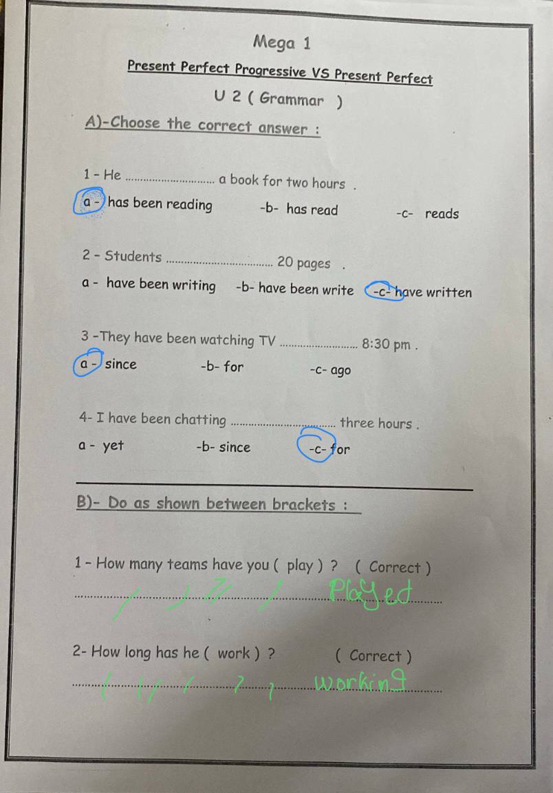 ورقه عمل علي قواعد الوحده الثانيه ميجا جول 1